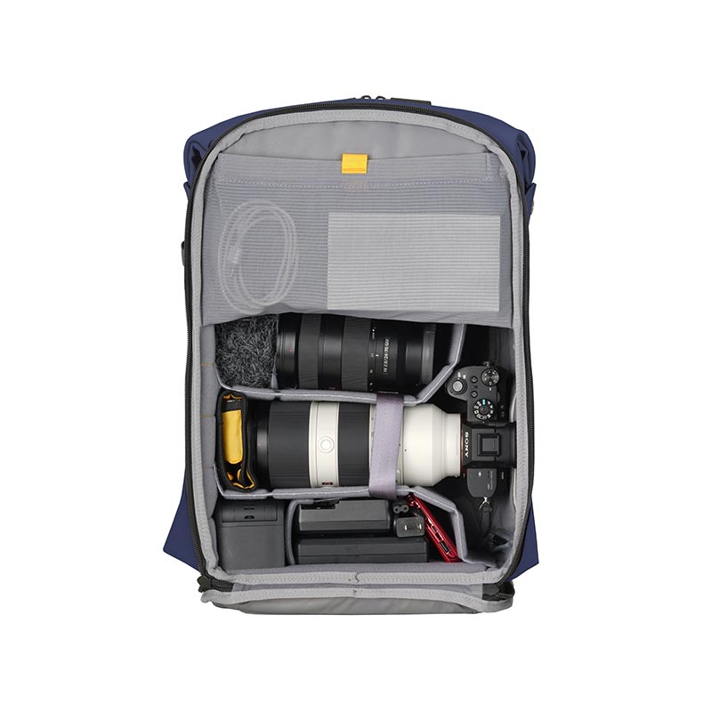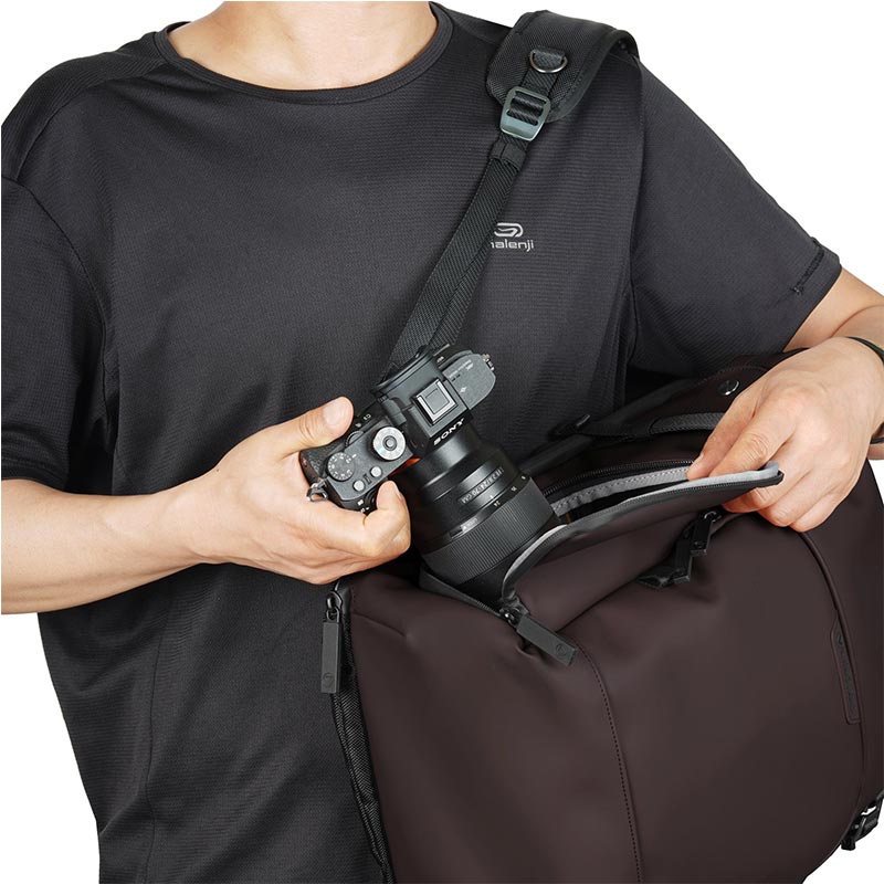 The main storage space uses a smart EVA material divider to protect your gear. Multiple lenses and accessories can be stored efficiently alongside a single mirrorless camera. In addition, when the divider is removed, it can be used as a backpack for daily use, and the flexible structure can be freely changed according to the occasion.